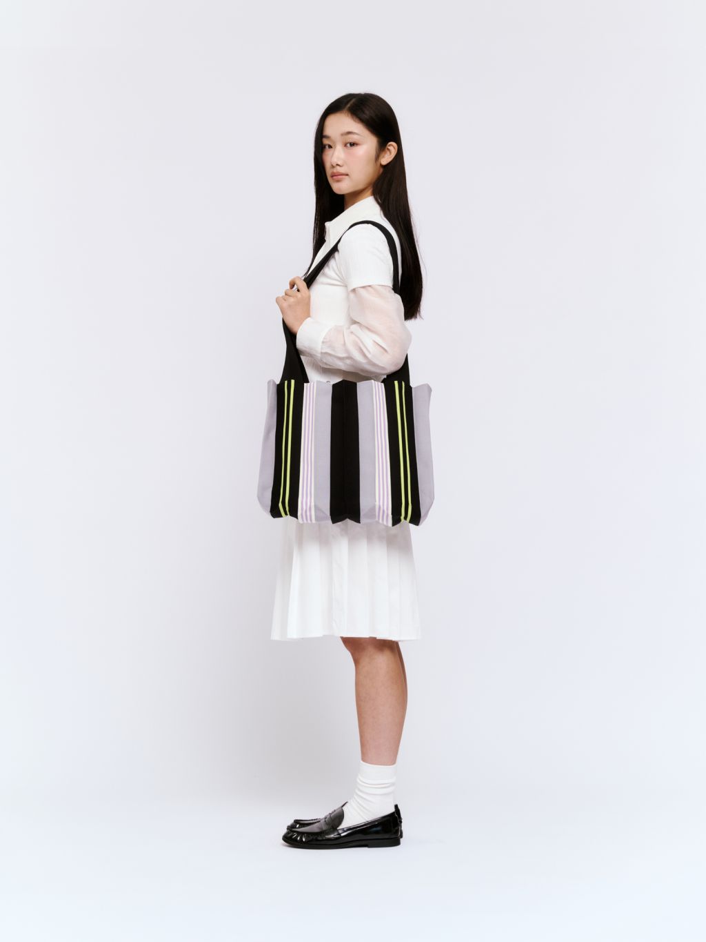* The width and length of the product may flexibly stretch due to the characteristics of the knit and pleats design.