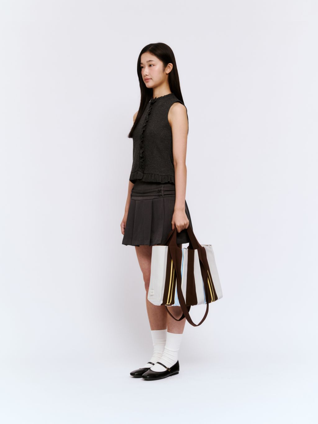 * The width and length of the product may flexibly stretch due to the characteristics of the knit and pleats design.