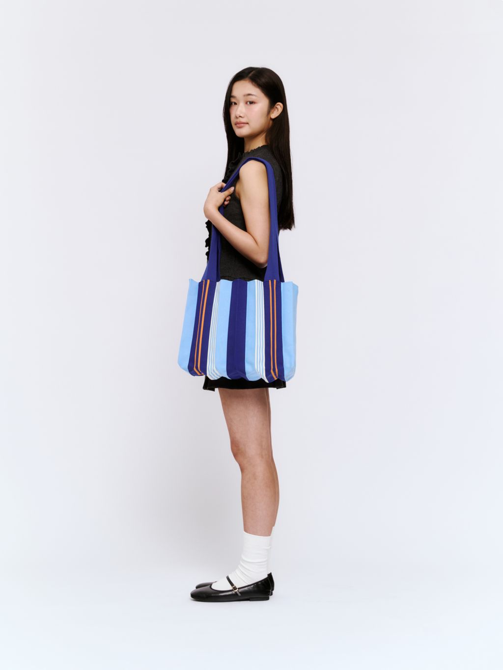 * The width and length of the product may flexibly stretch due to the characteristics of the knit and pleats design.