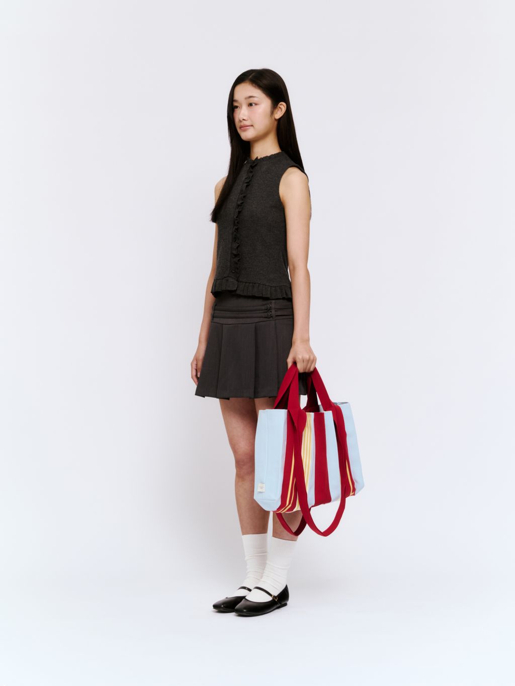 * The width and length of the product may flexibly stretch due to the characteristics of the knit and pleats design.