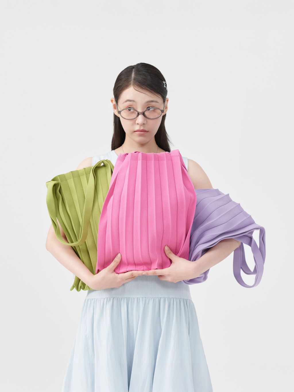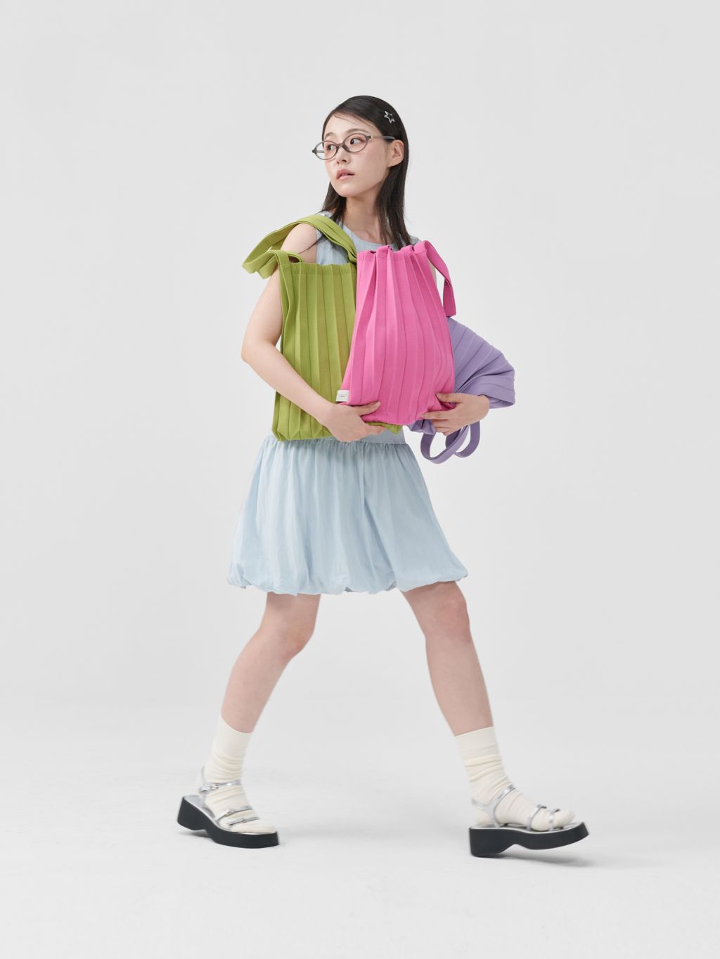 * The width and length of the product may flexibly stretch due to the characteristics of the knit and pleats design.