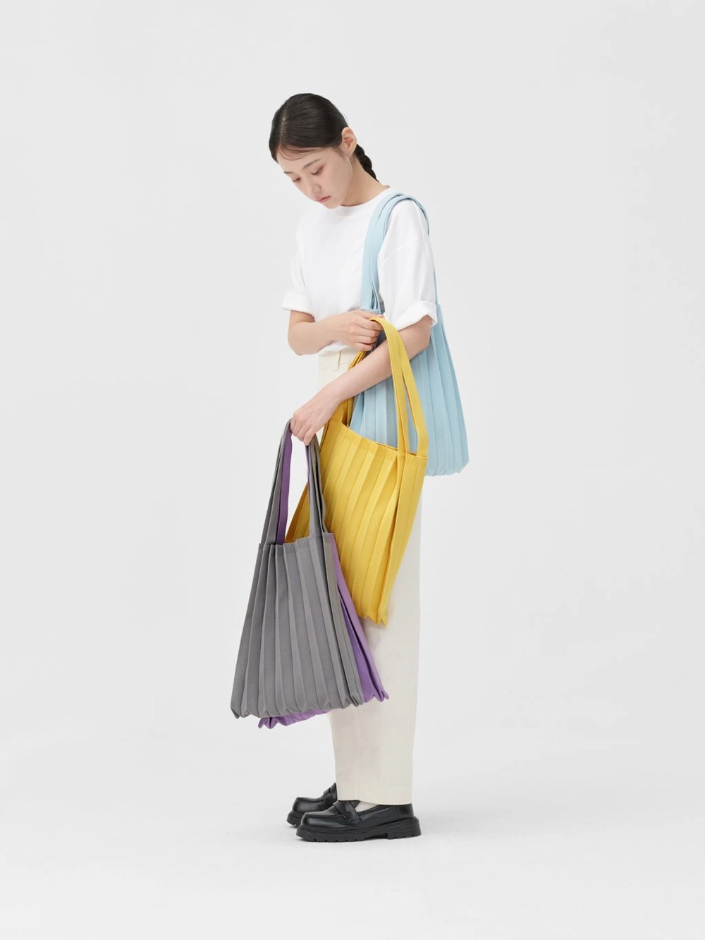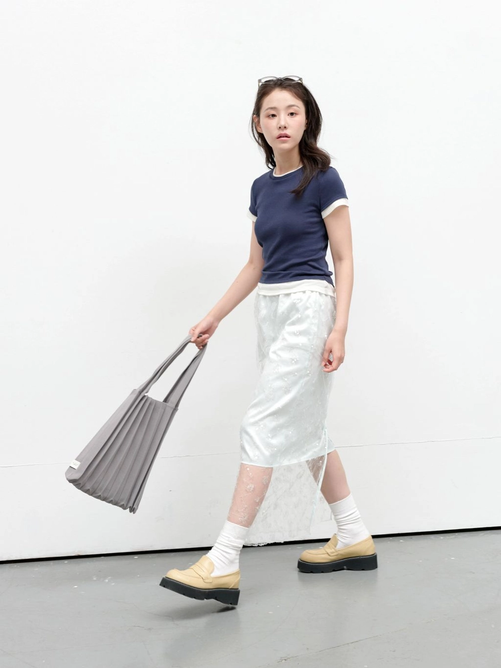 * The width and length of the product may flexibly stretch due to the characteristics of the knit and pleats design.
