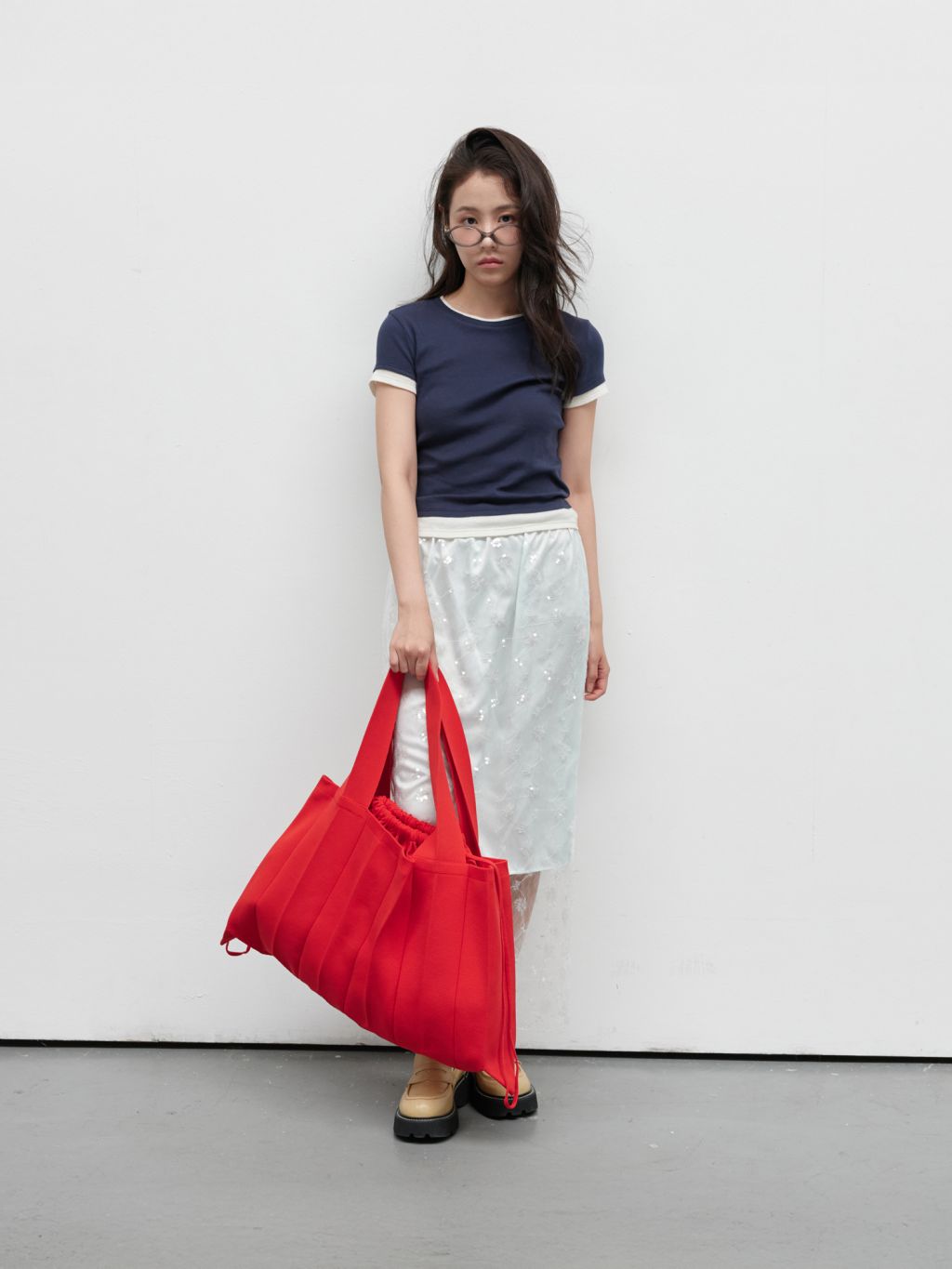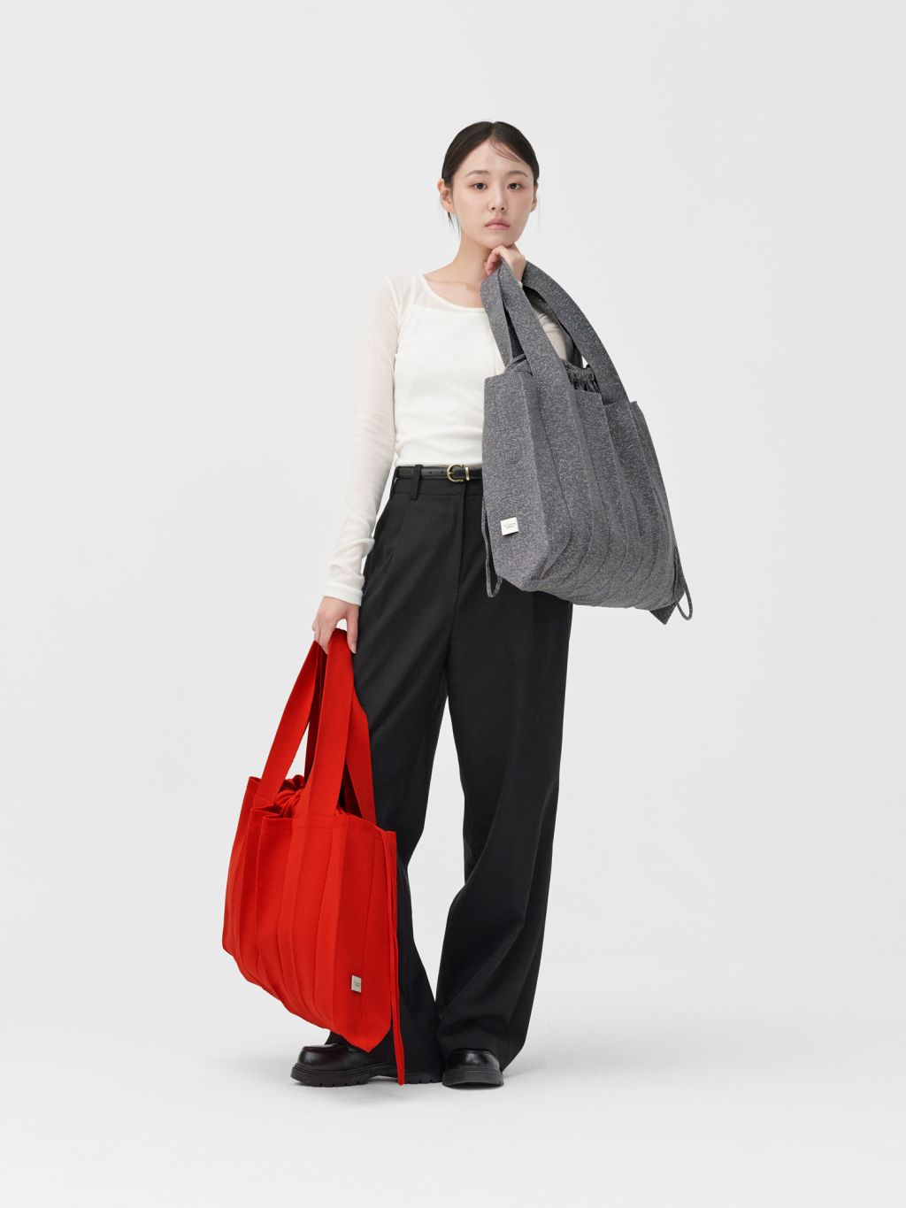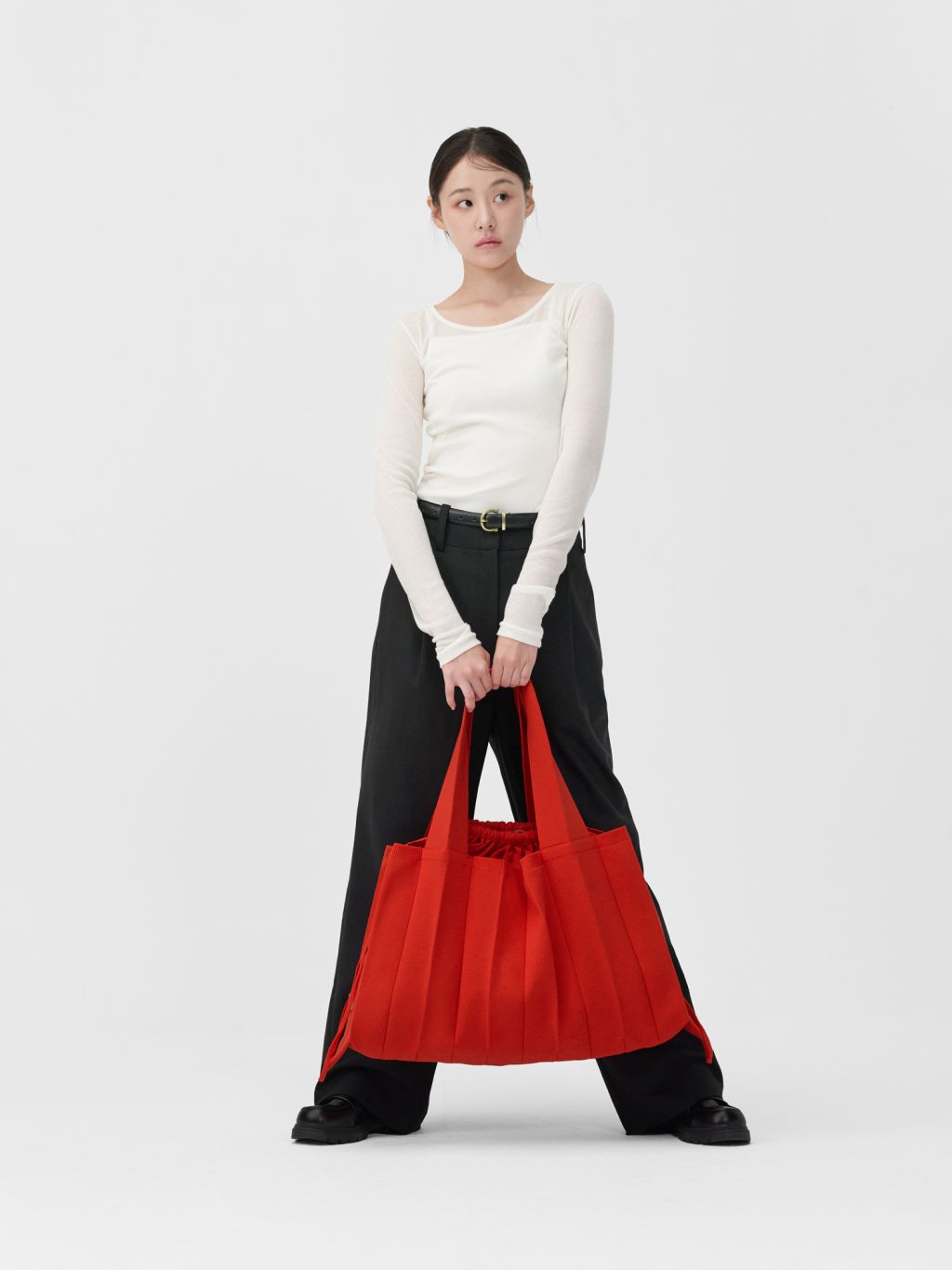 * The width and length of the product may flexibly stretch due to the characteristics of the knit and pleats design.
