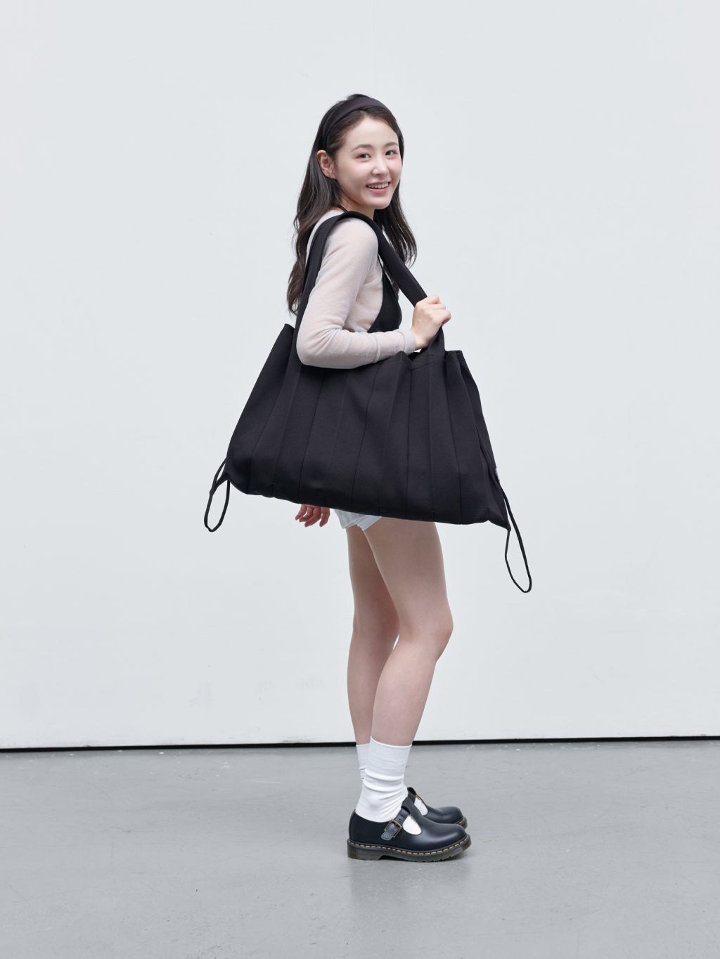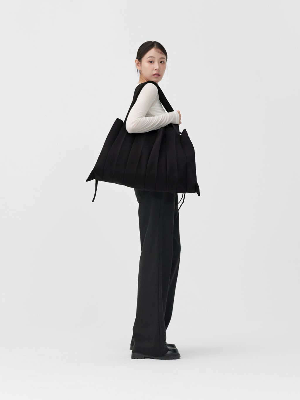 * The width and length of the product may flexibly stretch due to the characteristics of the knit and pleats design.