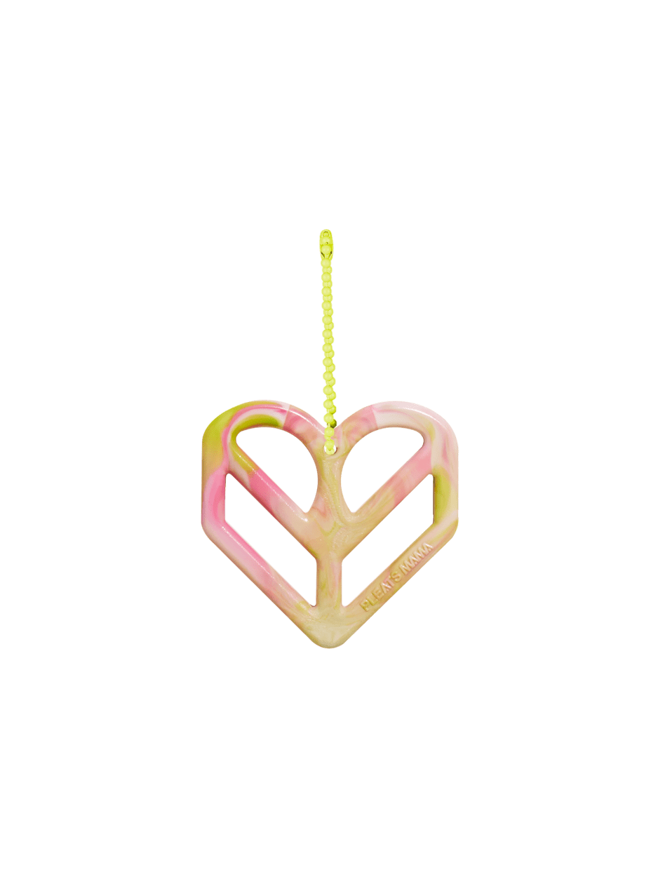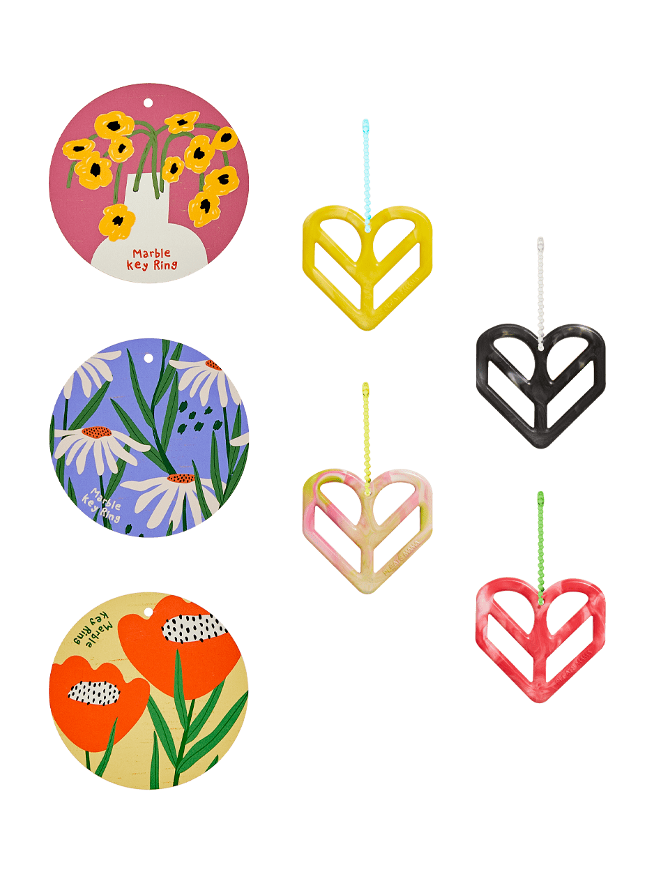 The keyring, made by recycling about 5 bottle caps, features a heart shape that embodies the sincerity of PLEATSMAMA and vibrant colors.