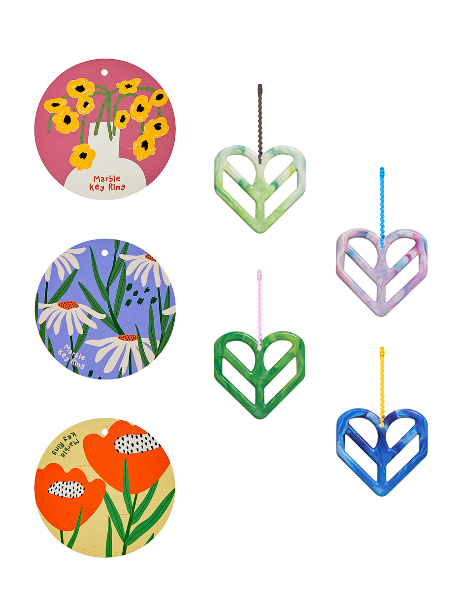 The keyring, made by recycling about 5 bottle caps, features a heart shape that embodies the sincerity of PLEATSMAMA and vibrant colors.