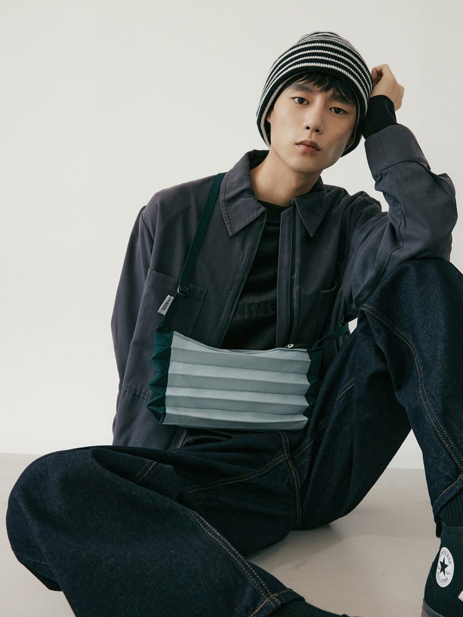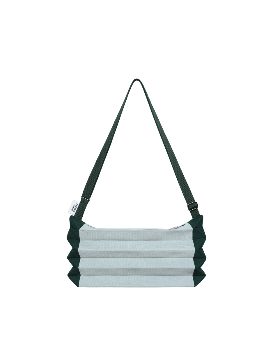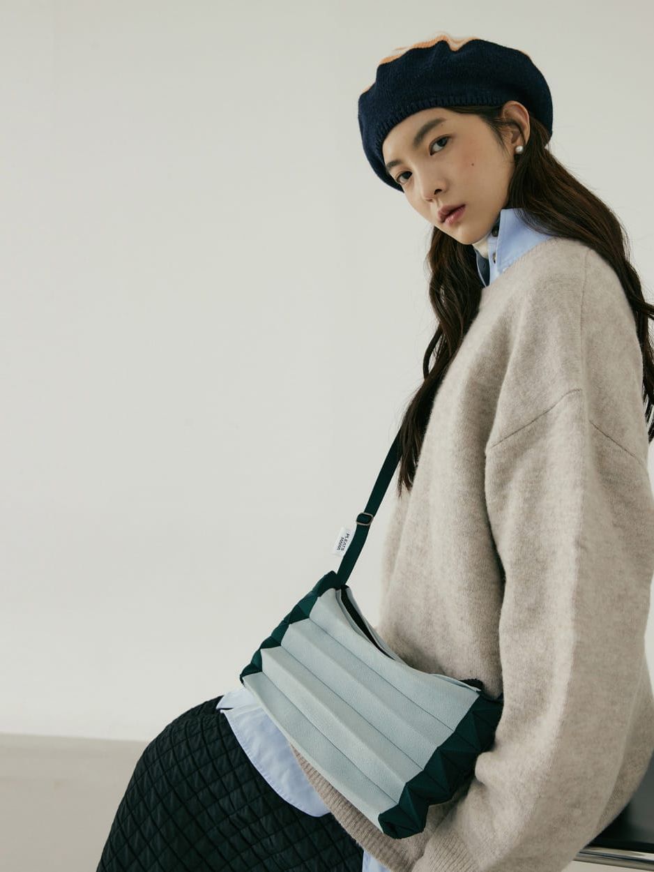It is made of environment-friendly materials recycled from PET bottles. / It is characterized by its unique colors and tight-knit texture. / It is a flexible bag, being folded and unfolded up and down, and offers enough room for items. / The adjustable strap supports a wearing style fit for a given situation. / When not in use, it can be folded small along the crease to carry and keep easily.
