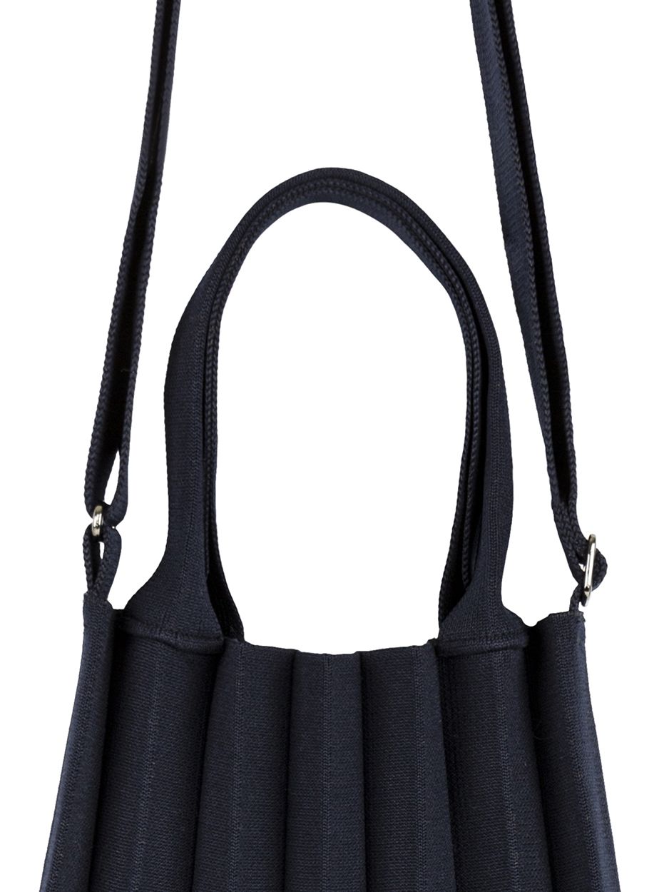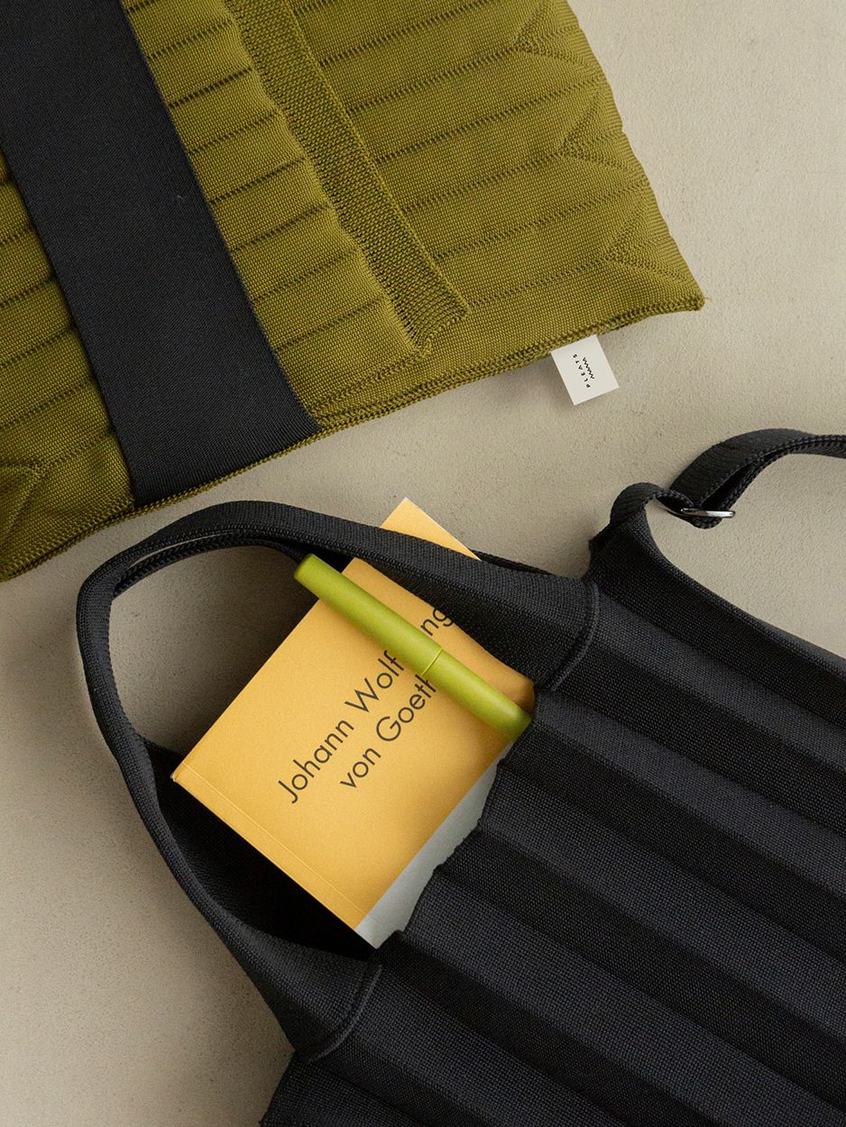Combining the flexibility of knit and the structural stability and sturdiness of woven fabric, this bag effortlessly accommodates heavy loads.