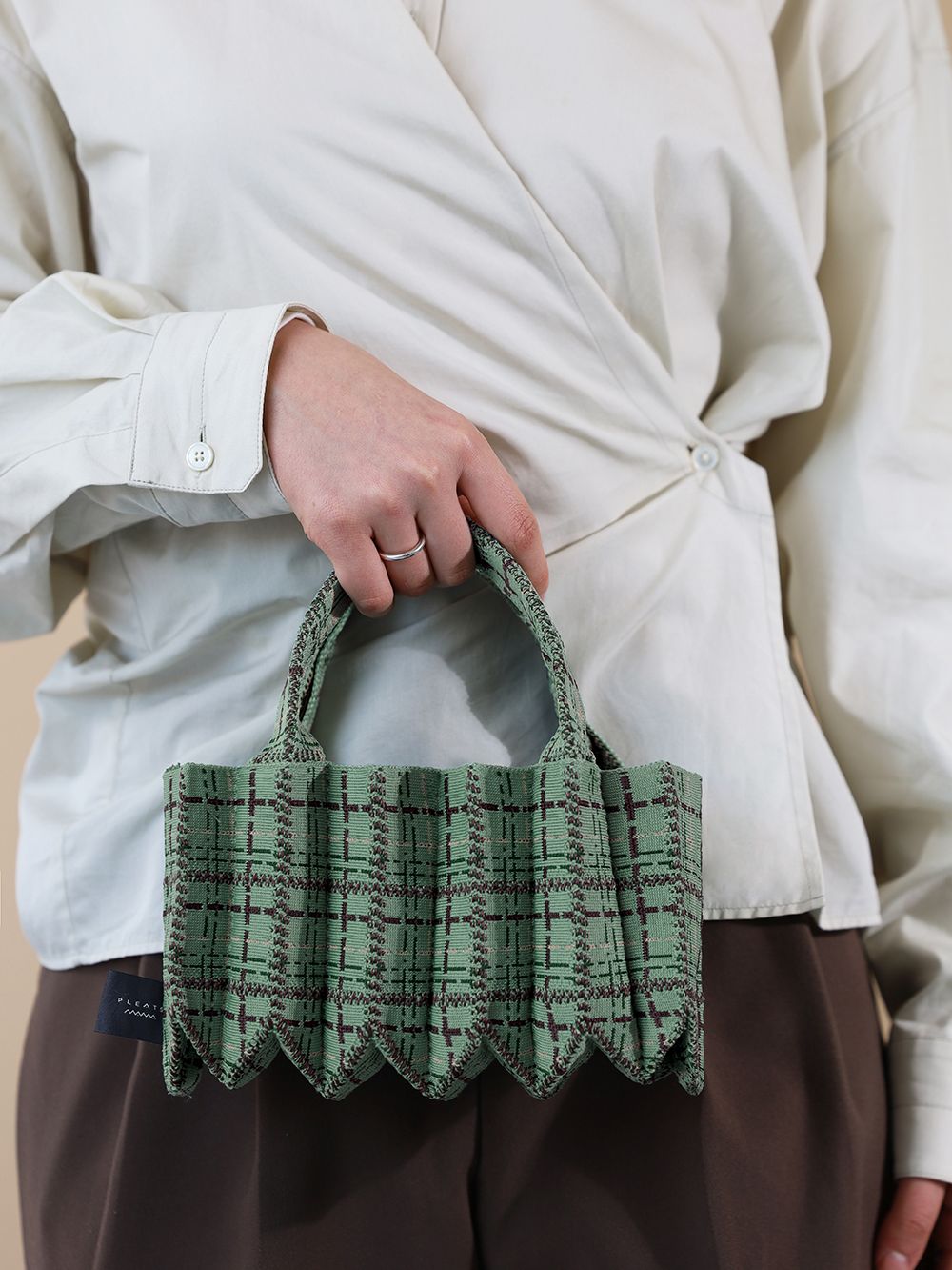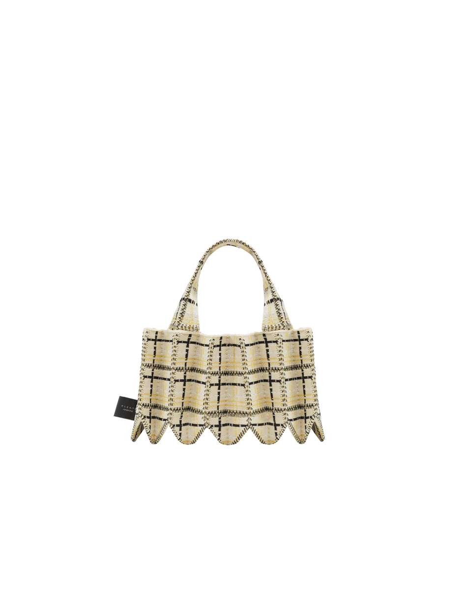 Small but mighty in storage capacity, the tweed mini tote bag has you covered! Check out the inner strap detail that keeps all your essentials secure and worry-free.