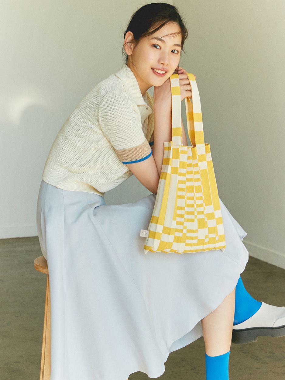 Its lightweight and soft knit material creates an effortless and stylish look for carrying your belongings.