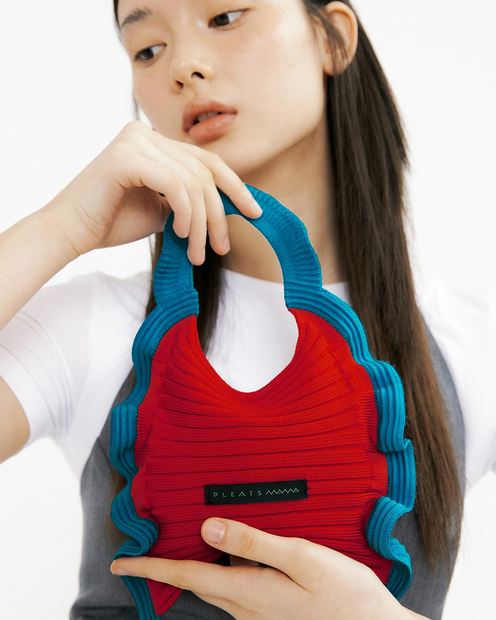 ラッフルミニトートバッグ レッドブルー