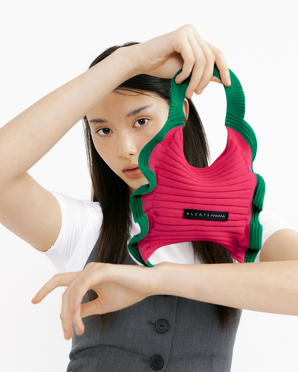 ラッフルミニトートバッグ ピンクグリーン