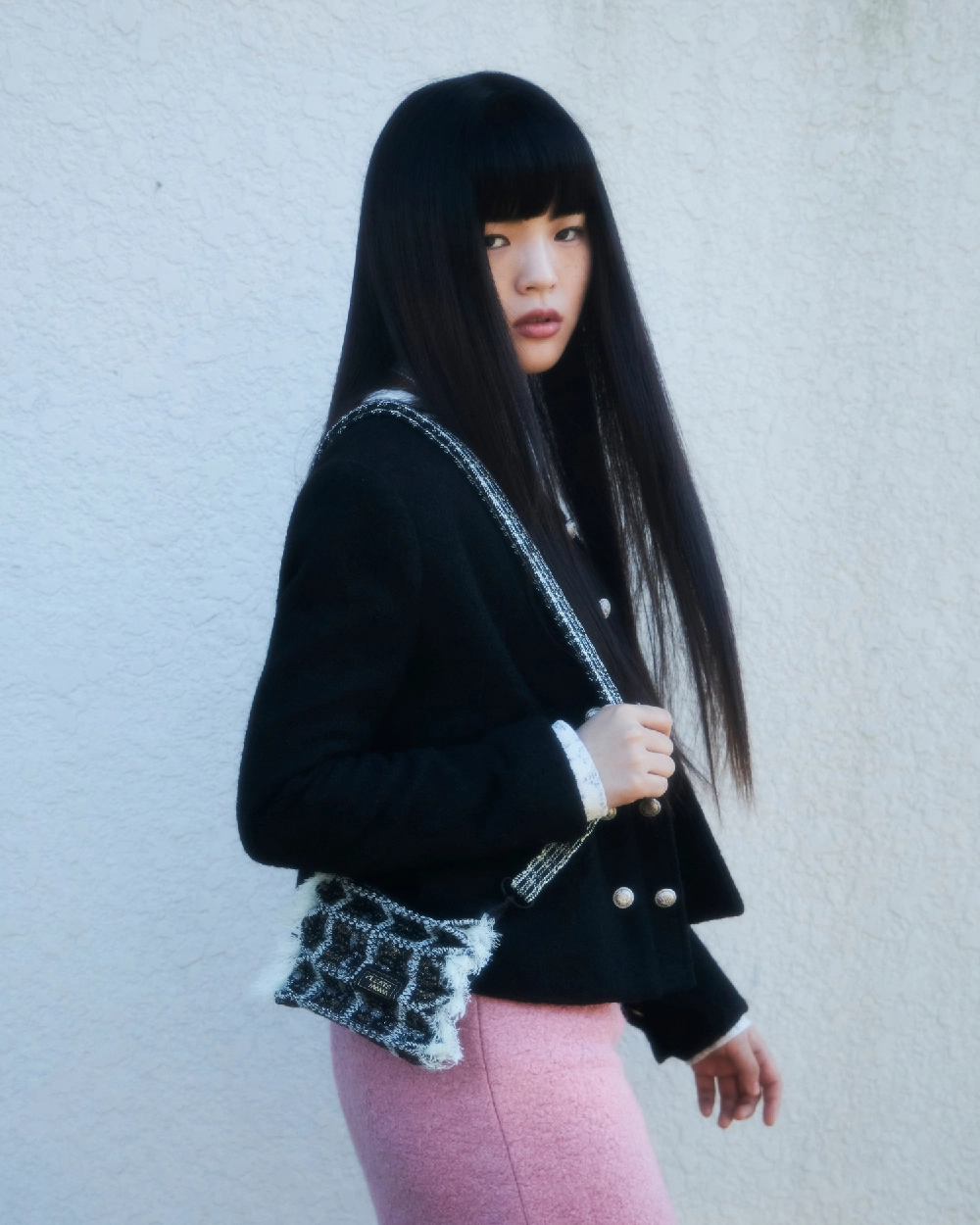 ツイードミニトートバッグ ペールピンク